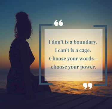 “I can’t” often lands as final and absolute. “I don’t” and “I choose” acknowledge reality and agency at the same time.